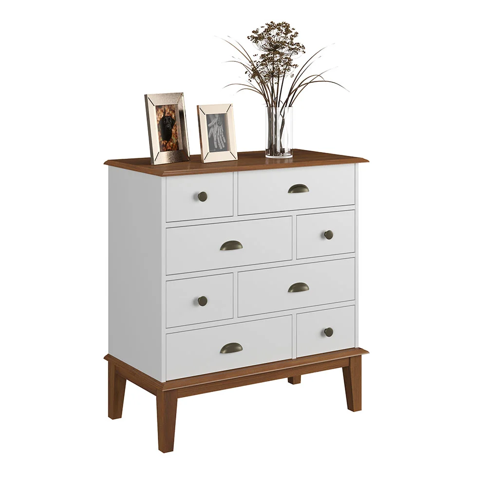 Com 8 gavetas espaçosas e puxadores metálicos, a cômoda é ideal para organizar roupas, documentos, acessórios ou objetos pessoais, unindo praticidade e estilo em qualquer espaço — do quarto ao escritório.